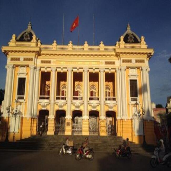 This is the Hanoi Opera House, built according to the model of the Paris Opera, but smaller in stature